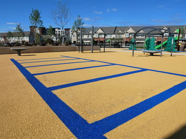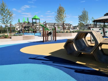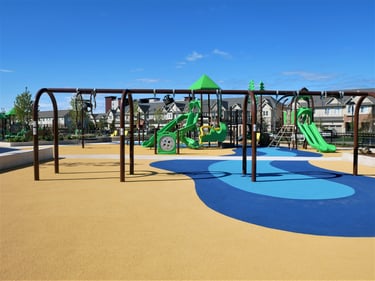 Accessibility: The playground is designed to be accessible with Softline's FirstBase Playground Safety Surface System, ensuring that children of all abilities can enjoy the space. Caregivers enjoy the beautiful playspace as the kids have a 'whale' of a time with the great marine themed surface design.