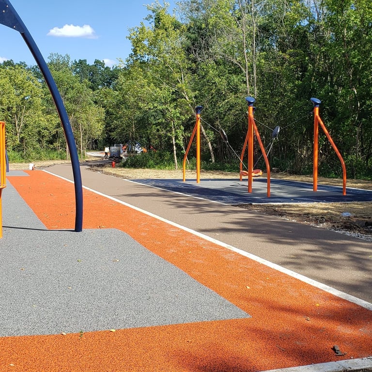 FlexiStep surfacing is a unique and innovative trail application that is resilient, safe and minimizes muscle fatigue.