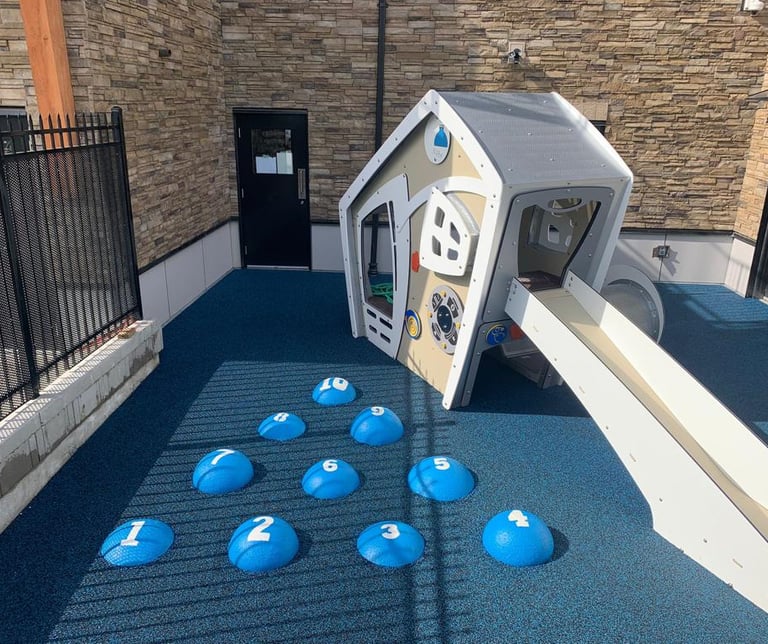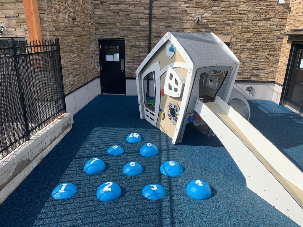 Softline Solutions provided the FirstBase Playground Surface system for Maple Ridge Playground. This also features the VistaLine Spheres.