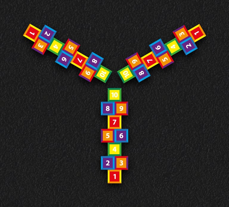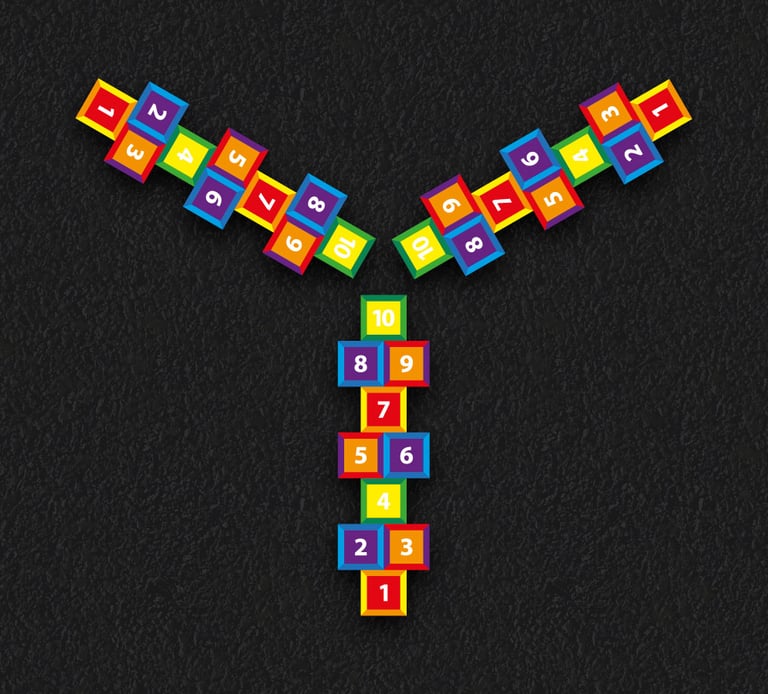 SAZALP surface markings are designed to add a pop of color and excitement to any playground. From hopscotch to four square to educational games and more, our markings can be customized to fit the needs and interests of your students.