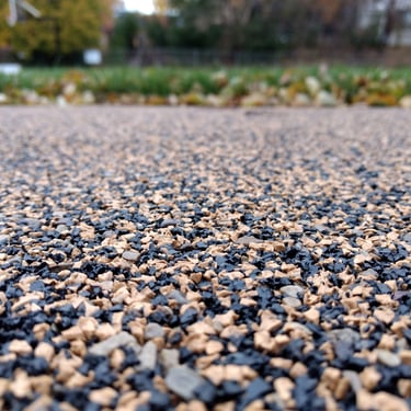 Surfaces utilizing black recycled rubber crumb are LEED compliant.