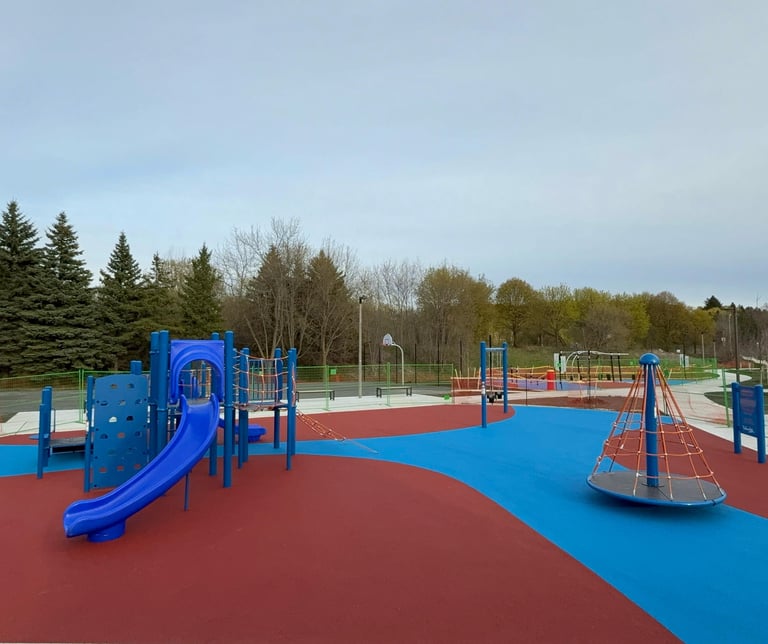 Softline Solutions is pleased to announce the successful completion of the playground surfacing project at Harding Park. The installation features a vibrant combination of two custom-colored surfacing mixes in red and blue, designed to provide a safe, durable, and visually engaging play area for the community.